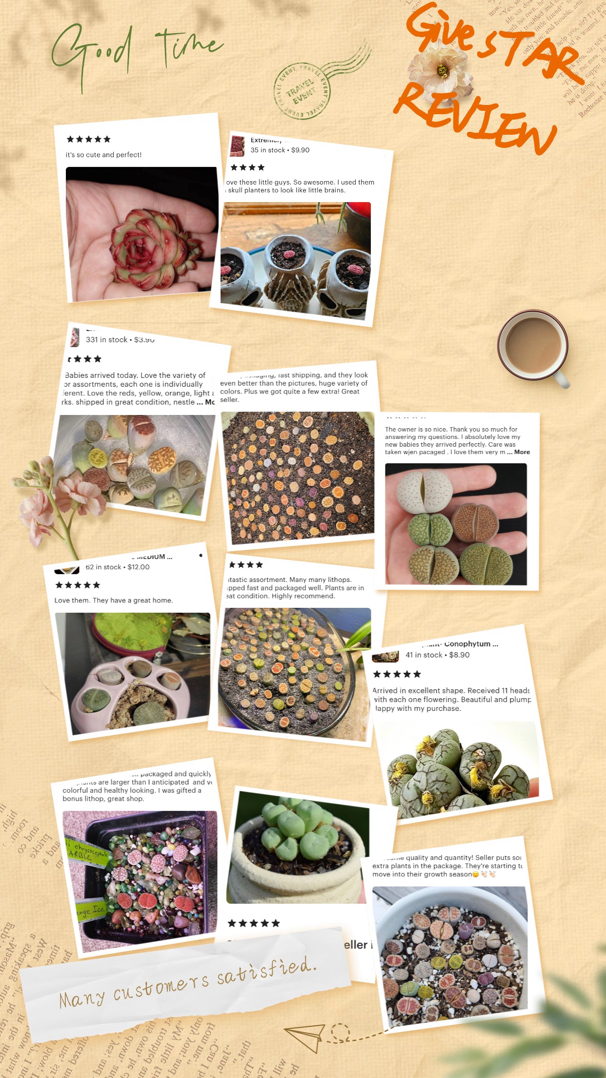 Secret Succulent Garden is continuously expanding to fulfill the diverse needs of our customers. Our products adorn not just gardens and nurseries, but also numerous e-commerce platforms. With nationwide delivery, we bring our exquisite lithops to enthusiasts across the country.
